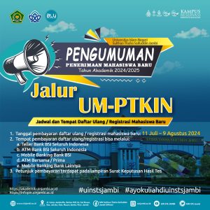 Pelaksanaan seleksi Ujian Masuk (UM) PTKIN di seluruh Indonesia telah dilaksanakan pada tanggal 24 hingga 30 Juni kemarin. Hari ini hasil penerimaan mahasiswa baru UIN Sulthan Thaha Saifuddin Jambi jalur
